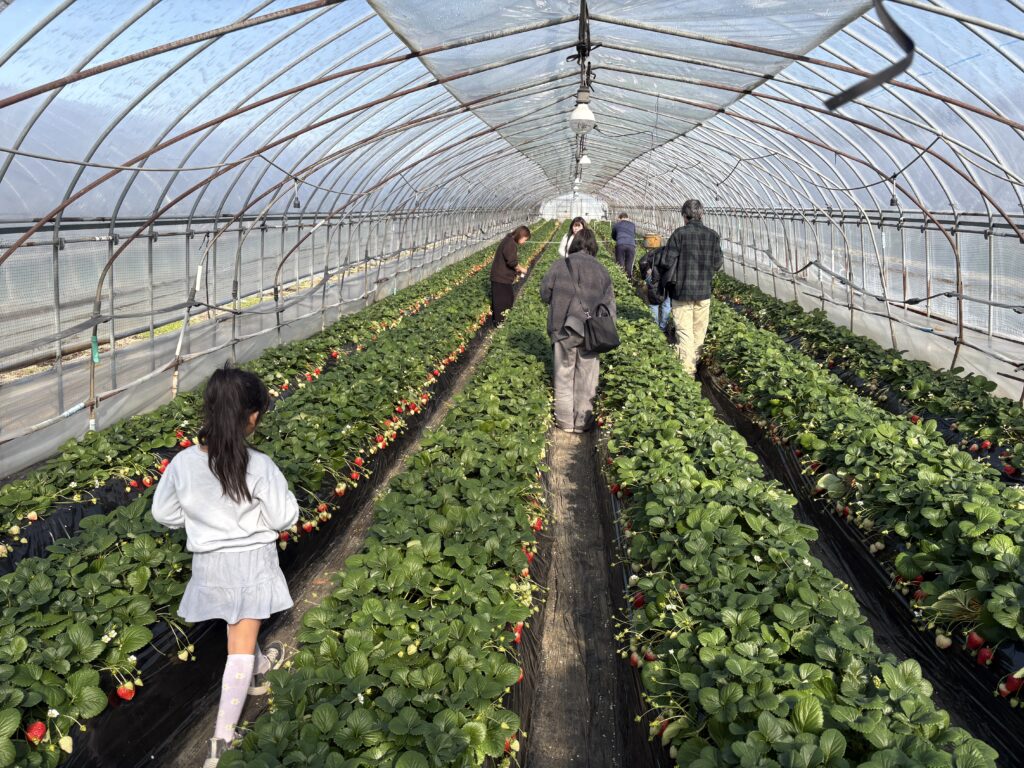 いちご狩りのハウスに入って、